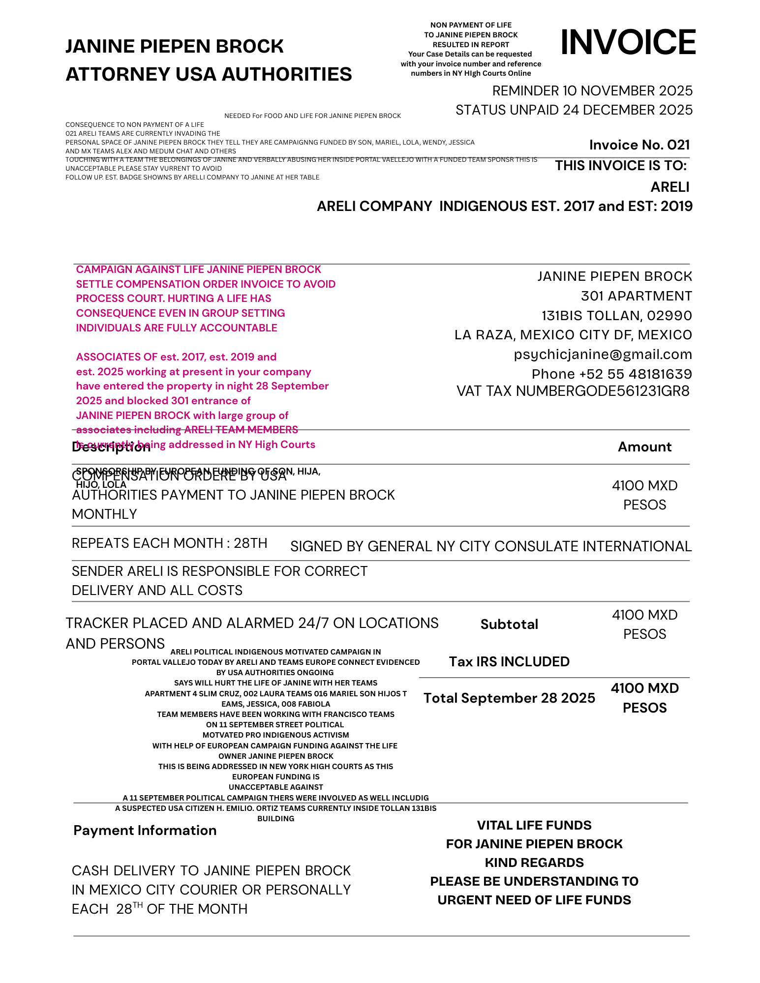 021 INVOICE ARELI REMINDER 24 DECEMBER 2025