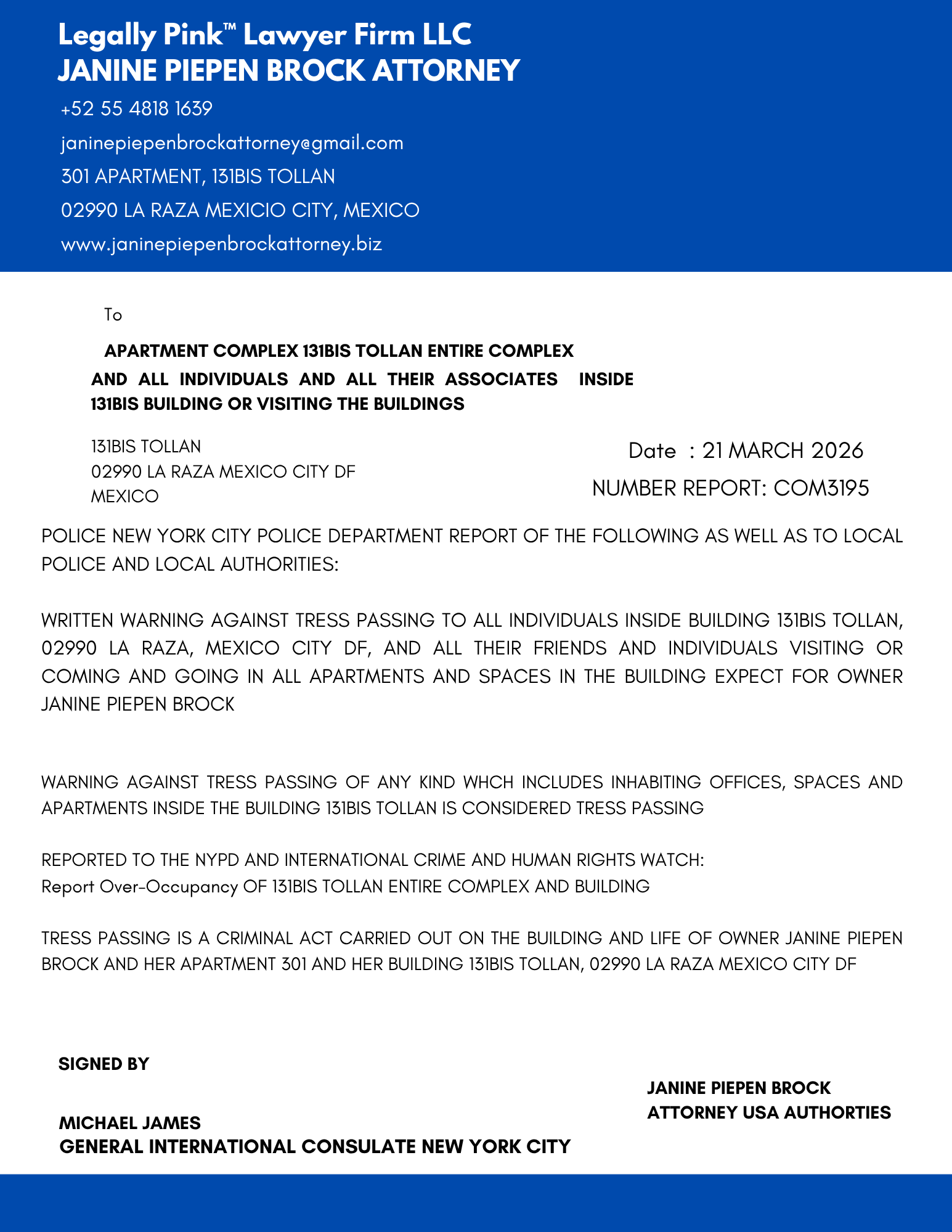 NOTICE ENTIRE COMPLEX 131BIS TOLLAN, 21 MARCH 2026