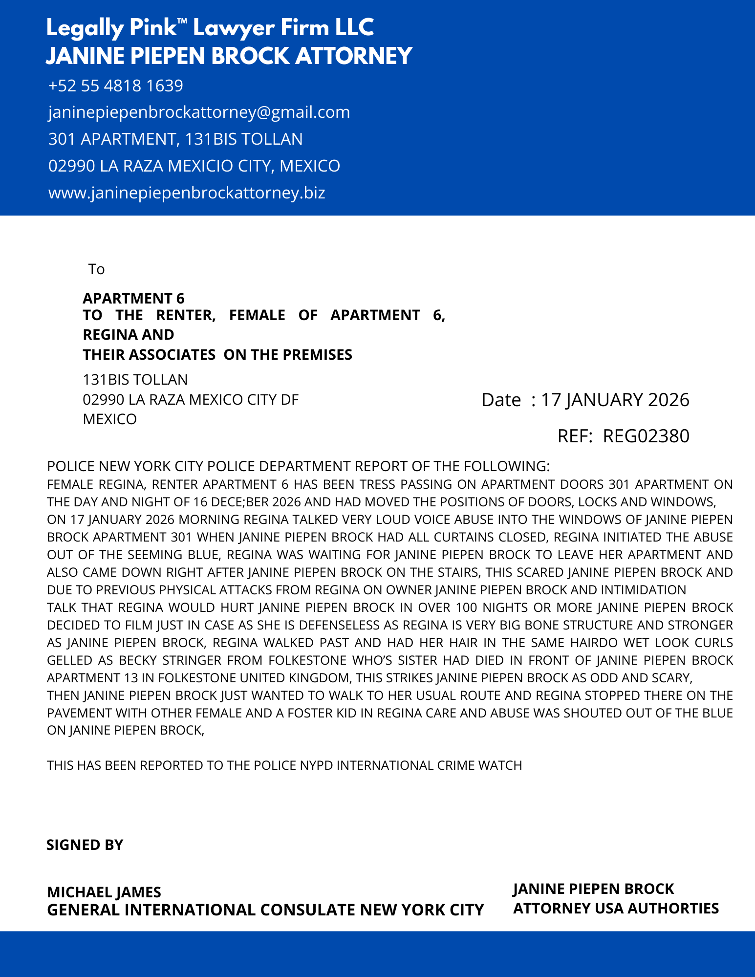 REPORT APARTMENT 6, REGINA 17 JANUARY 2027