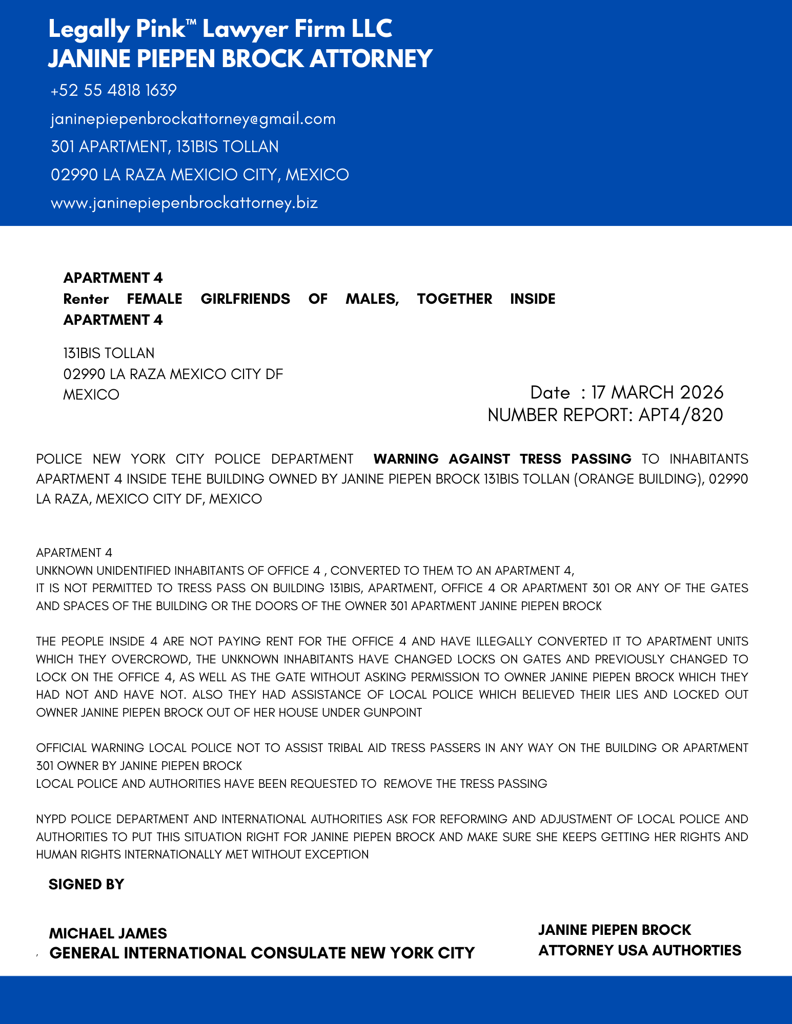 REPORT APT. 4, TRES, 17 MARCH 2026
