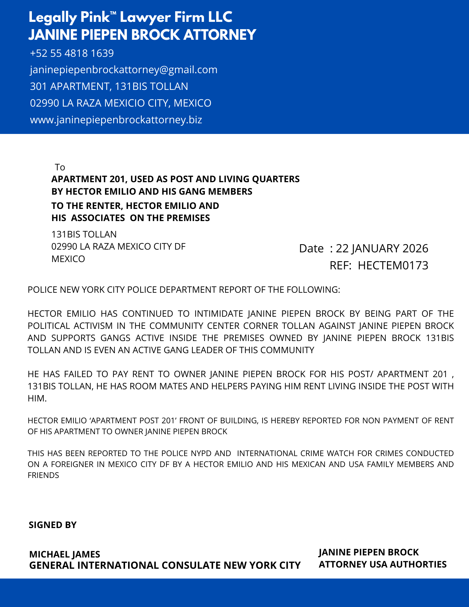 REPORT HECTOR, 201 POST 131BIS TOLLAN, 22 JANUARY 2026