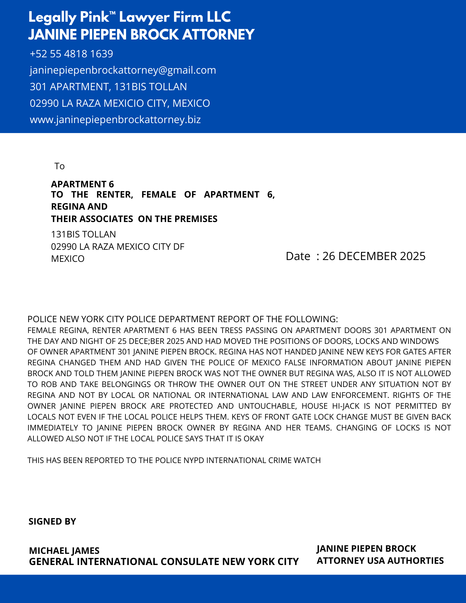 REPORT REGINA, APARTMENT 6, 26 DECEMBER 2025